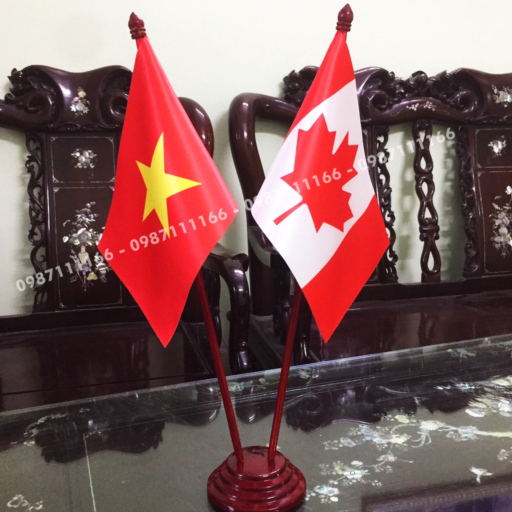 Nhà cửa & Đời sống > Nội thất > Bàn || Cờ Để Bàn Đế gỗ Cắm 2 cờ Việt Nam - Canada In Kỹ Thuật SốCòn hàng