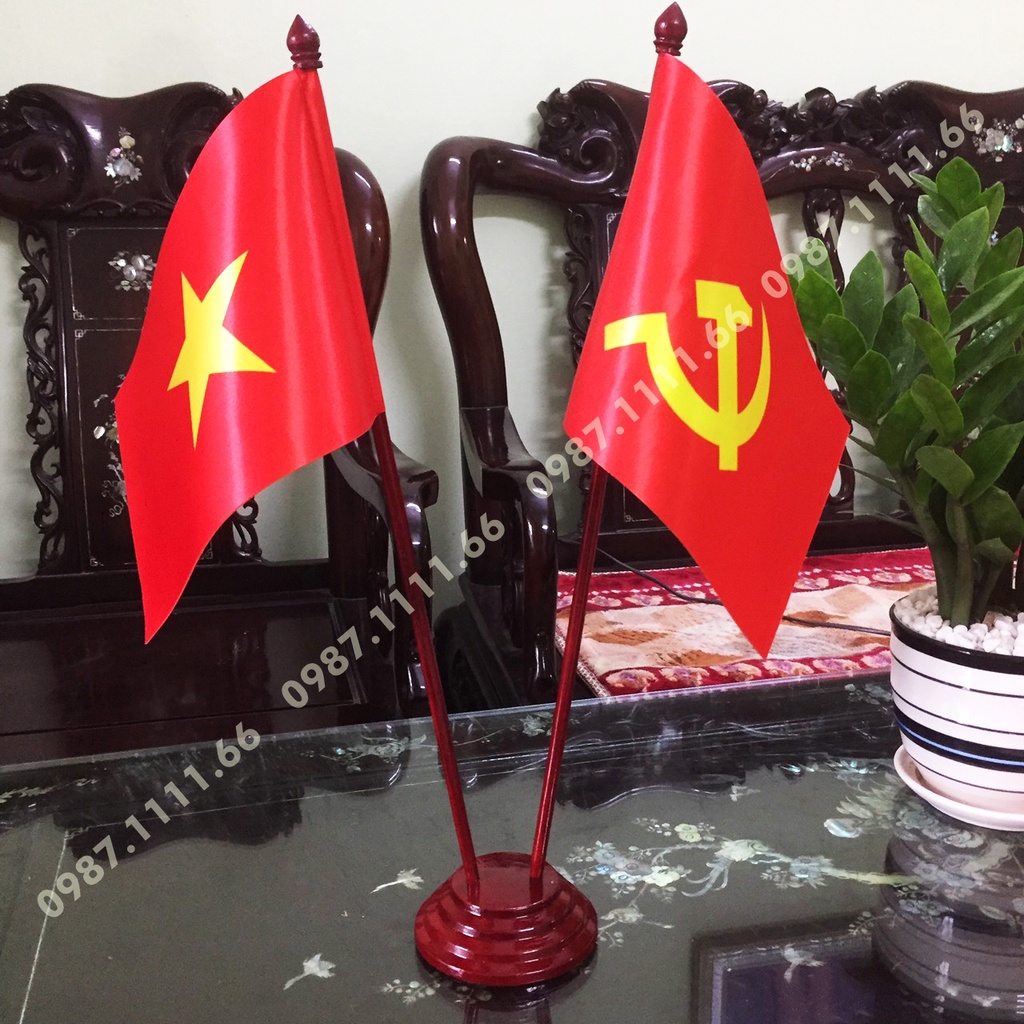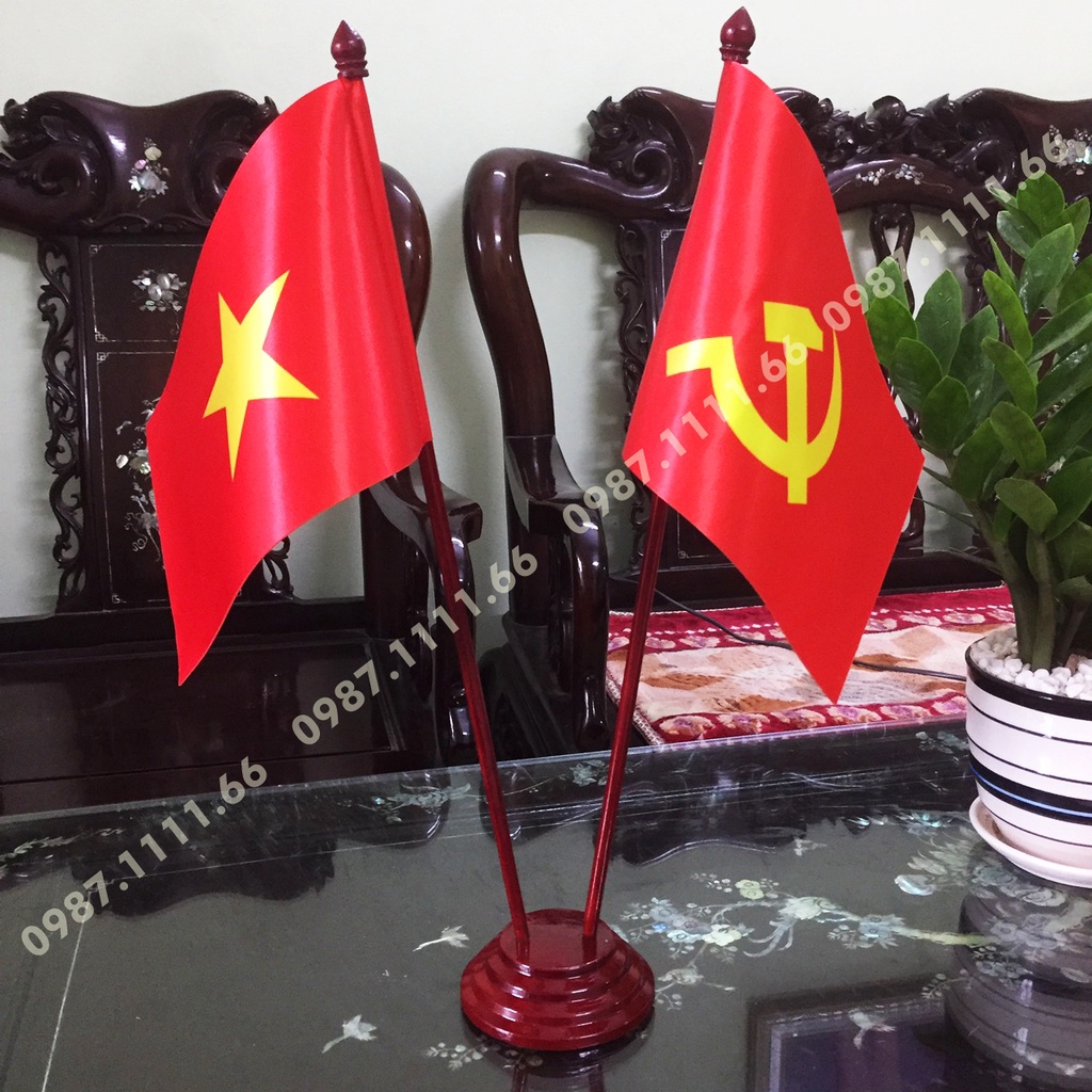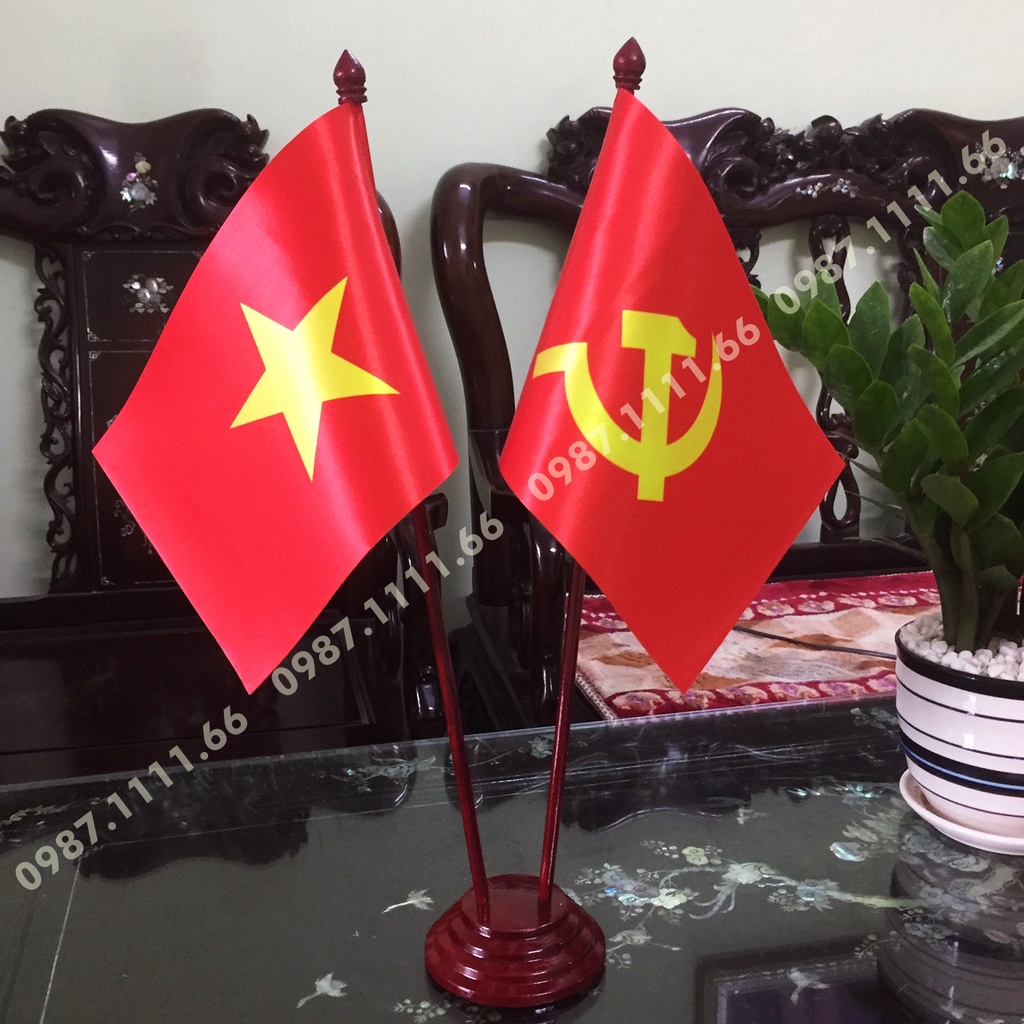 Giới thiệu Cờ Để Bàn Đế gỗ Cắm 2 cờ Việt Nam - Đảng