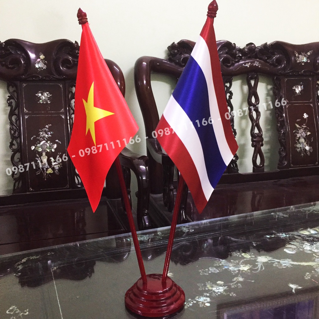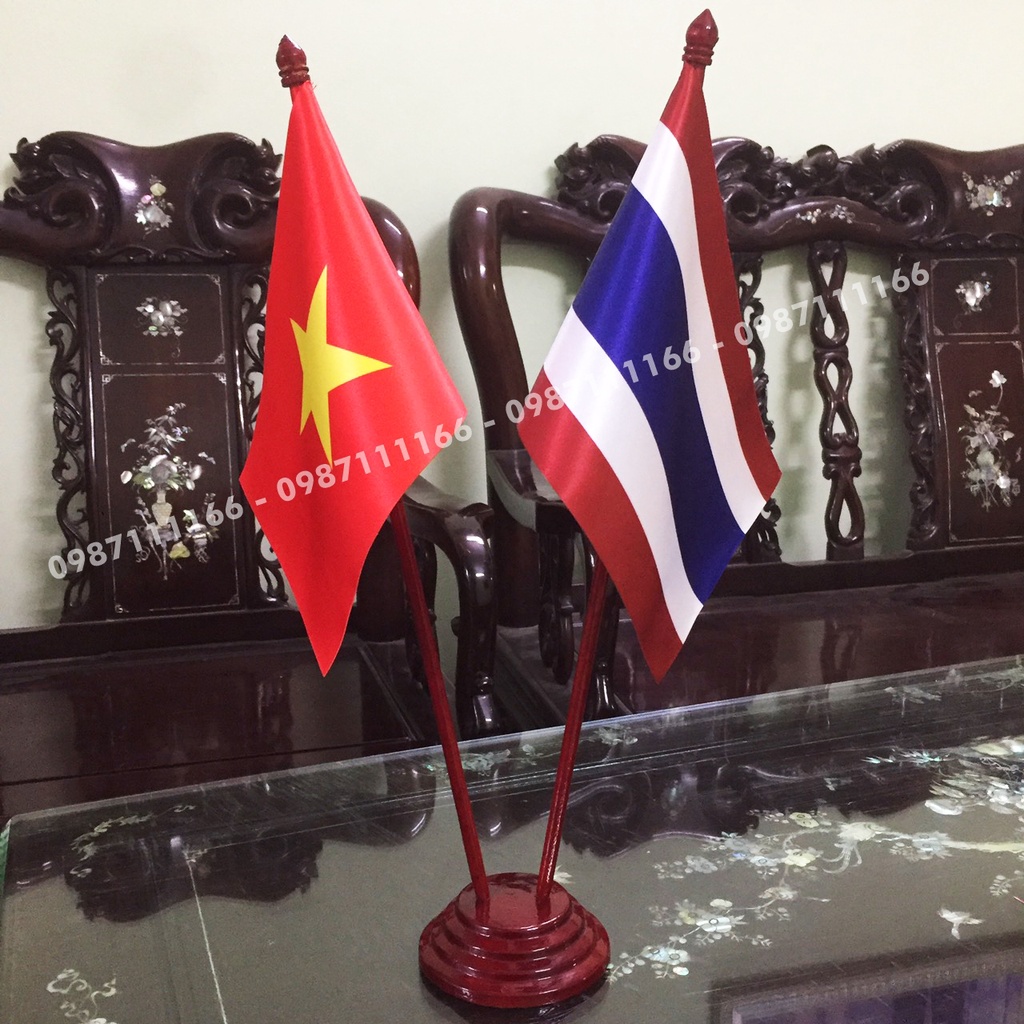 Cờ Để Bàn Đế gỗ Cắm 2 cờ Việt Nam - Thái Lan In Kỹ Thuật Số