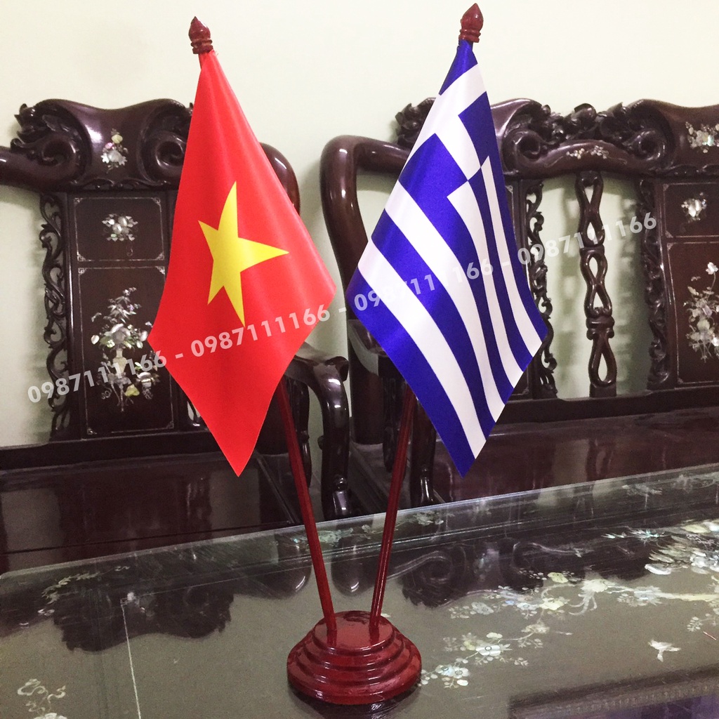 Cờ để bàn đế gỗ loại cắm 2 cờ với chiều cao bộ cờ 50cm kích thước lá cờ 16x24cm. QUý khách cần cờ của nước nào nhắn tin shop thay lá cờ cho ạSHOP CAM KẾT