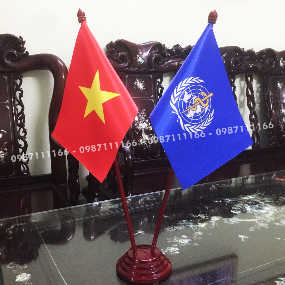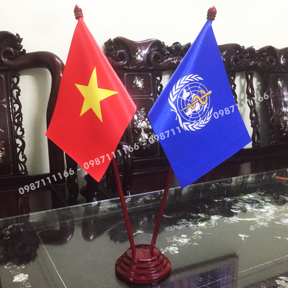 Nhà cửa & Đời sống > Nội thất > Bàn || Cờ Để Bàn Đế gỗ Việt Nam - Tổ Chức Y Tế Thế GiớiCòn hàng