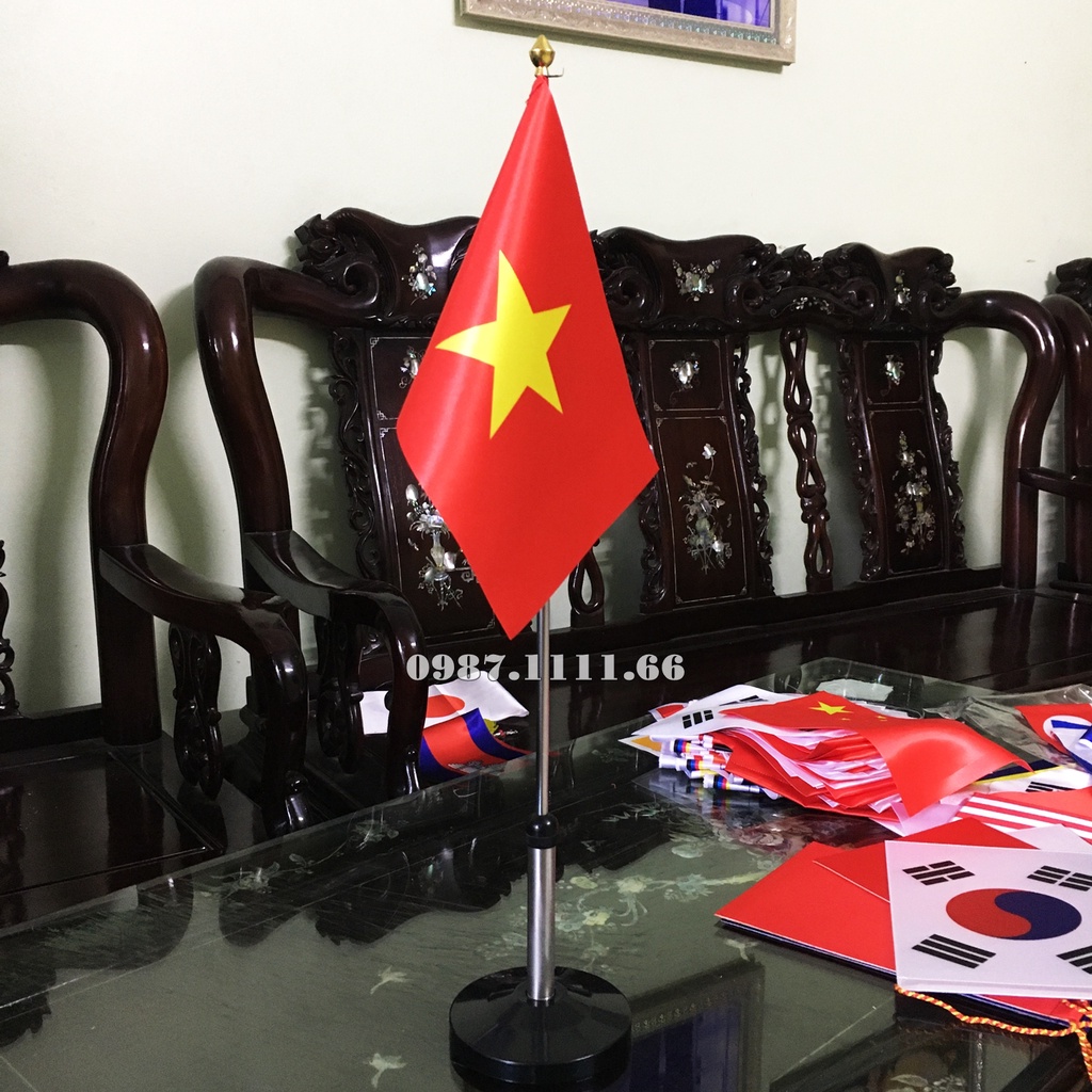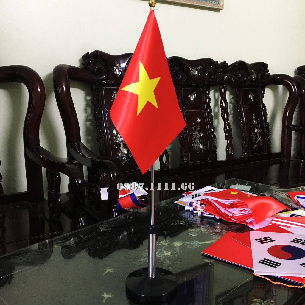 Cờ Để Bàn Đế Inox Kéo lên Xuông Được Dùng trong phòng làm việc, cờ phòng họp