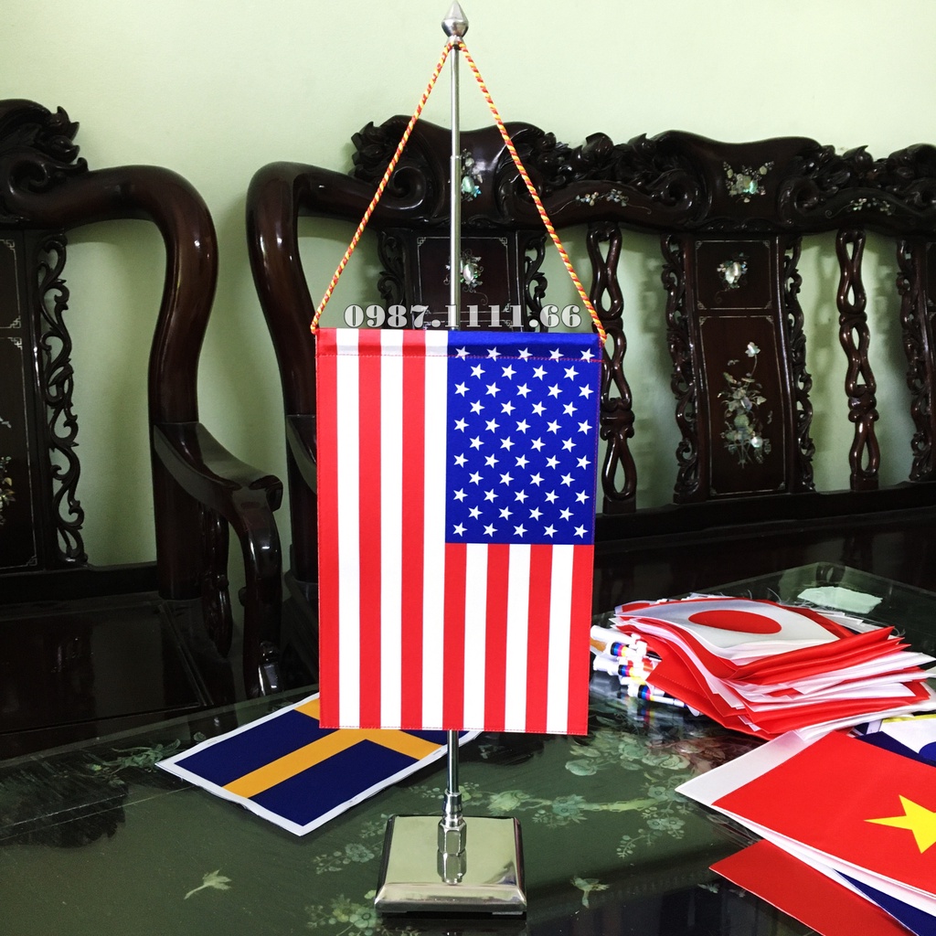 Cờ Để Bàn Đế Inox Kéo lên Xuông Được Dùng trong phòng làm việc, cờ phòng họp Loại cờ treo dây