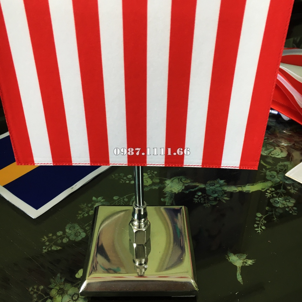 Cờ để bàn đế Inox loại vuônng Chiều cao của cán cờ kéo lên xuông được- Chiều cao thấp nhất 30cm