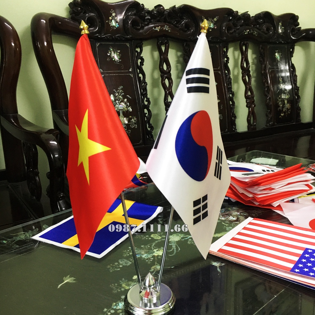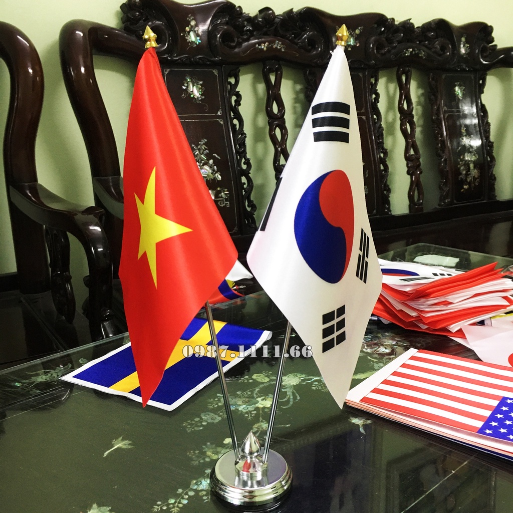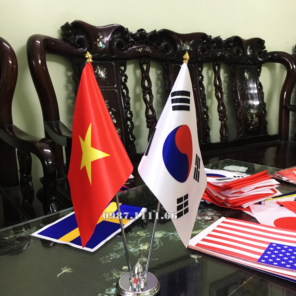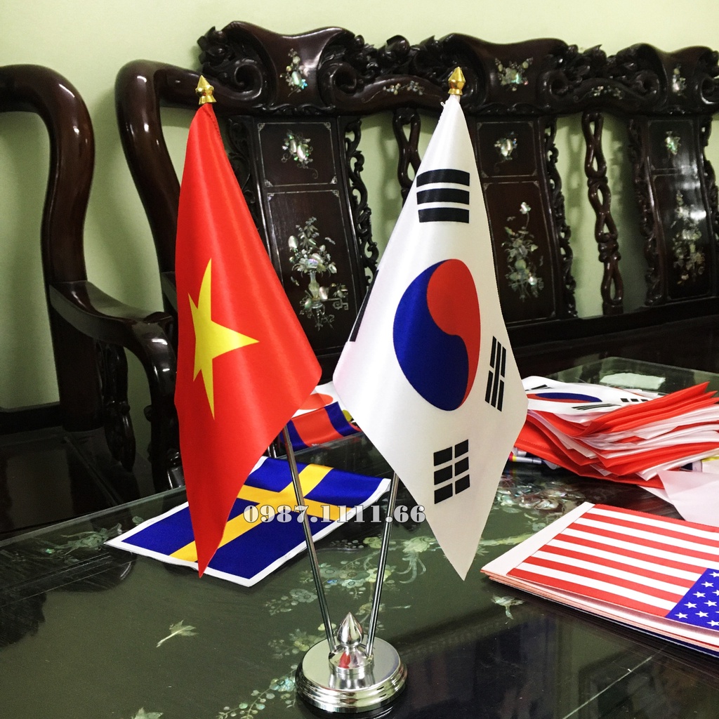 Cờ Để Bàn Đế Inox Loại cắm 2 cờ Các Nước Tùy Chọn
