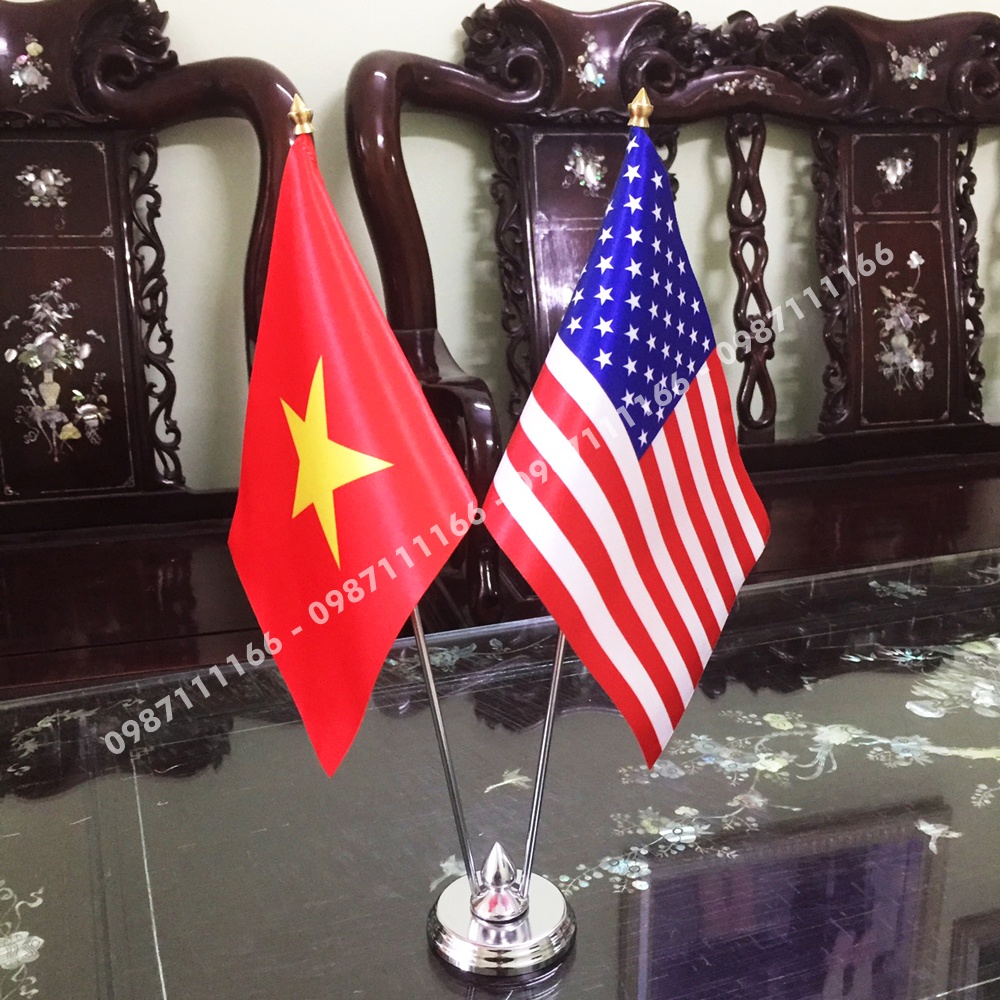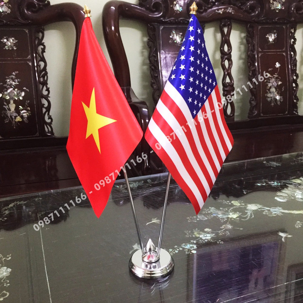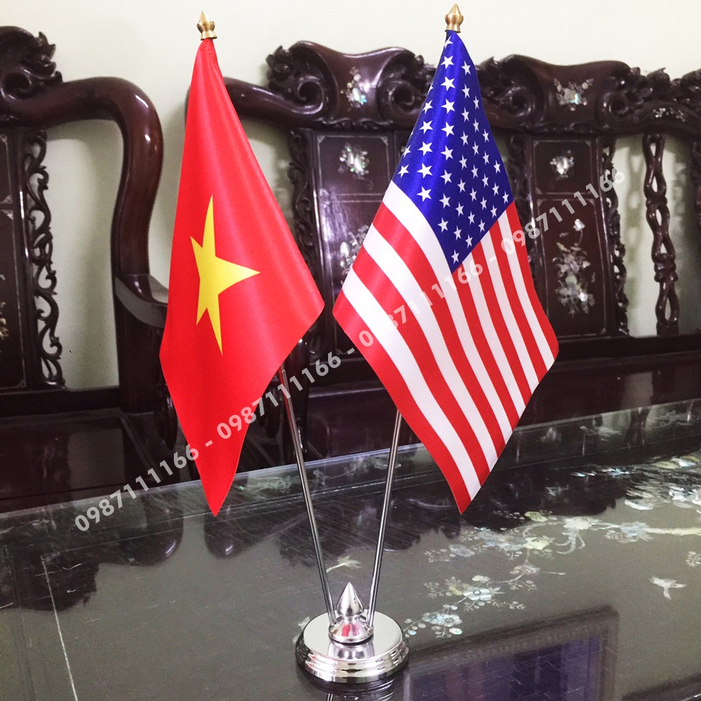 Cờ Để Bàn Đế Inox Loại cắm 2 cờ Việt Nam - Mỹ