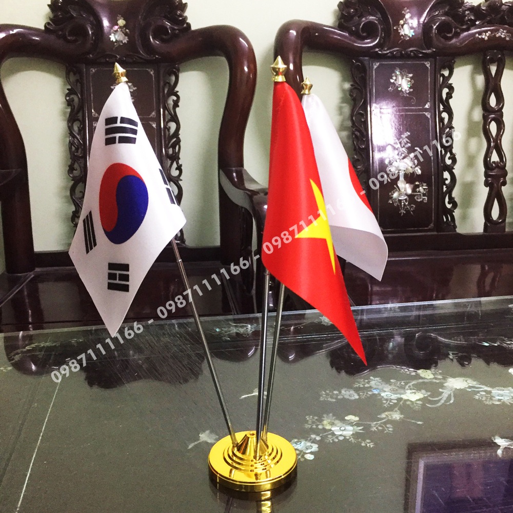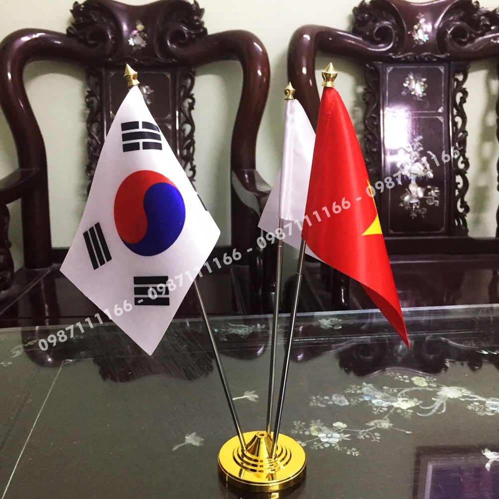 Cờ Để Bàn Đế Inox Loại cắm 3 cờ Việt Nam - Nhật Bản - Hàn Quốc