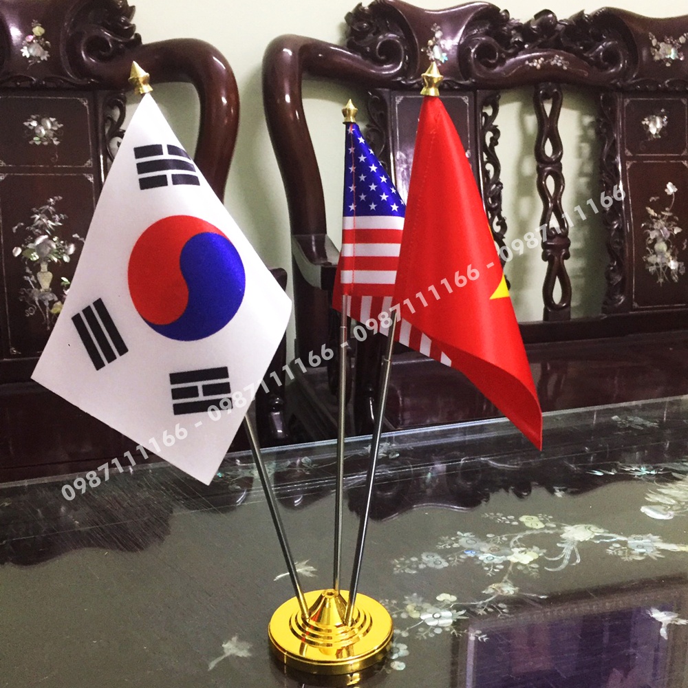 Cờ Để Bàn Đế Inox Loại cắm 3 cờ Tùy Chọn Các Nước