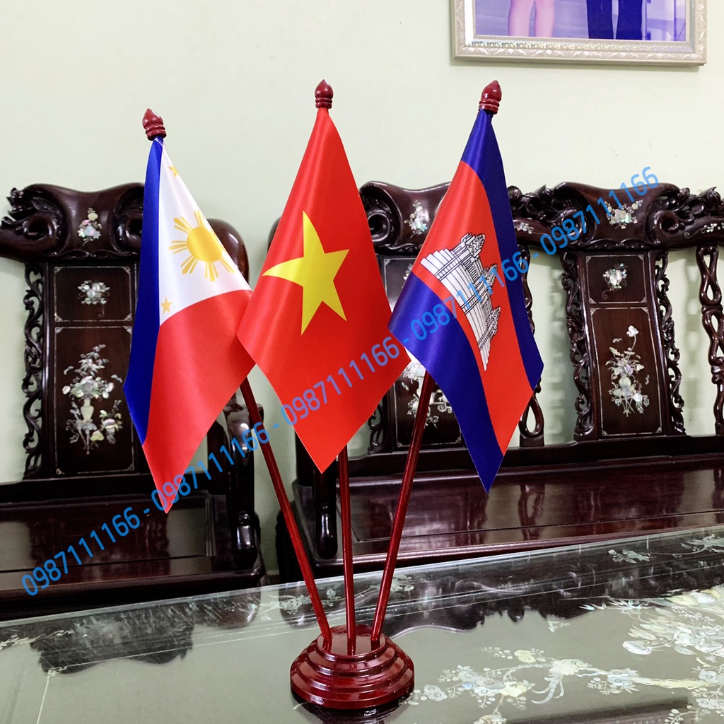 Cờ Để Bàn Gỗ 3 nước Philipine - Việt Nam - Camphuchia