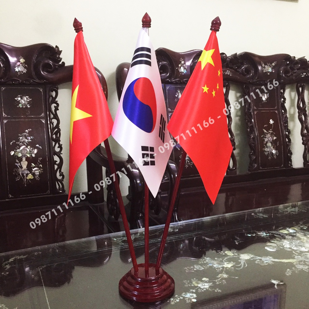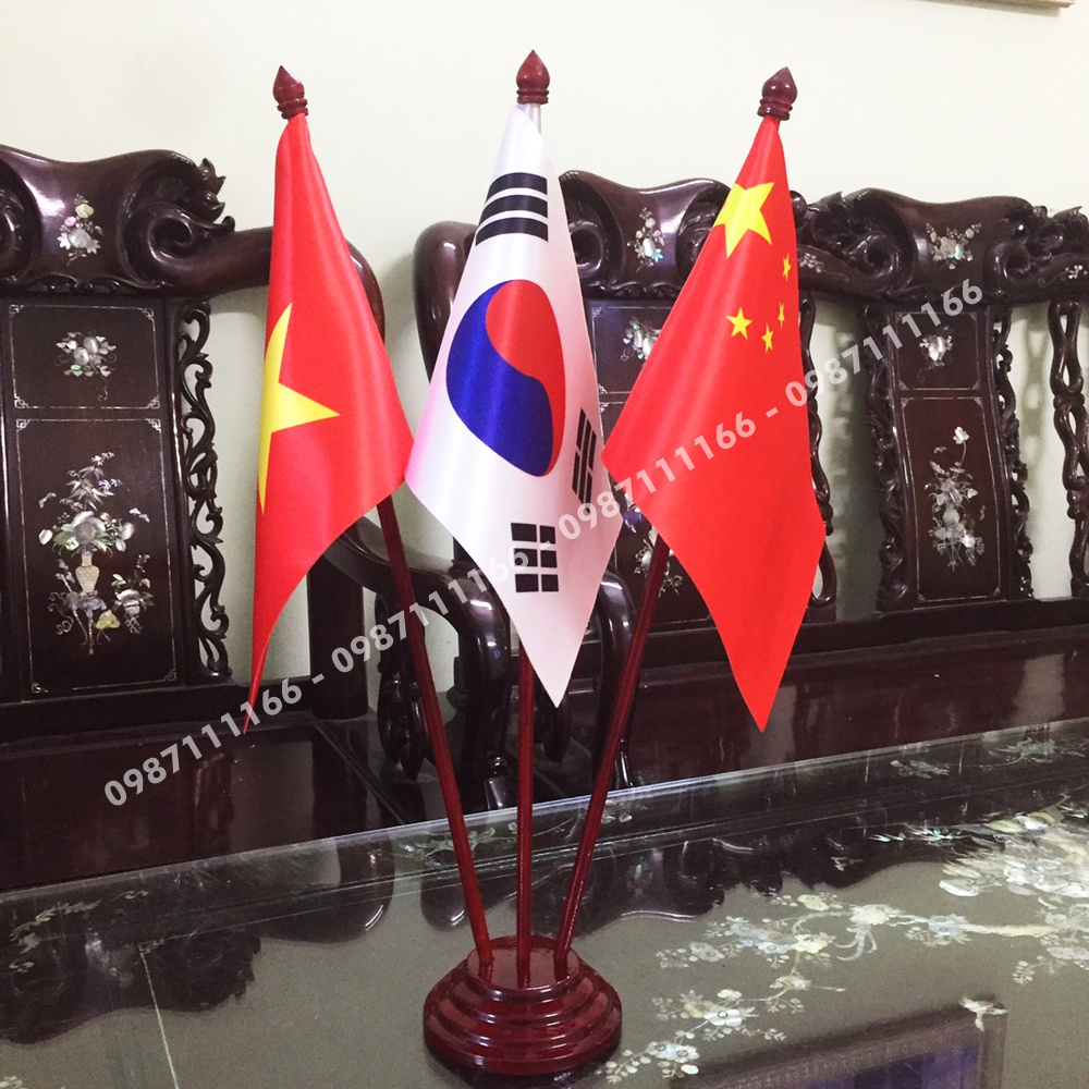 Cờ Để Bàn Gỗ 3 nước Việt Nam - Hàn Quốc - Trung Quốc