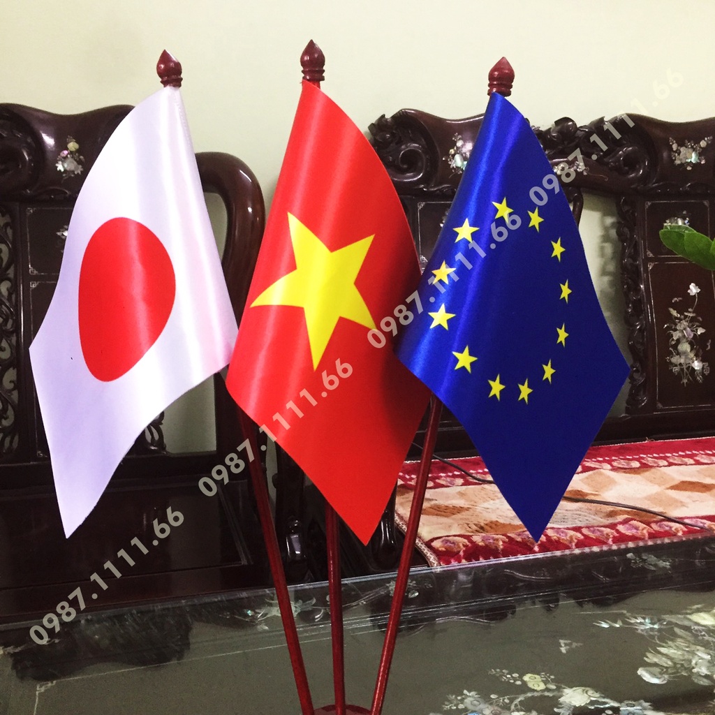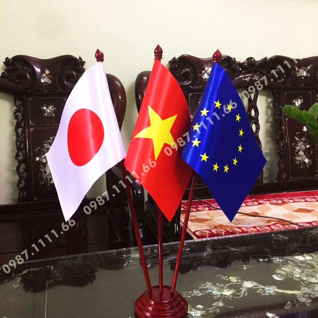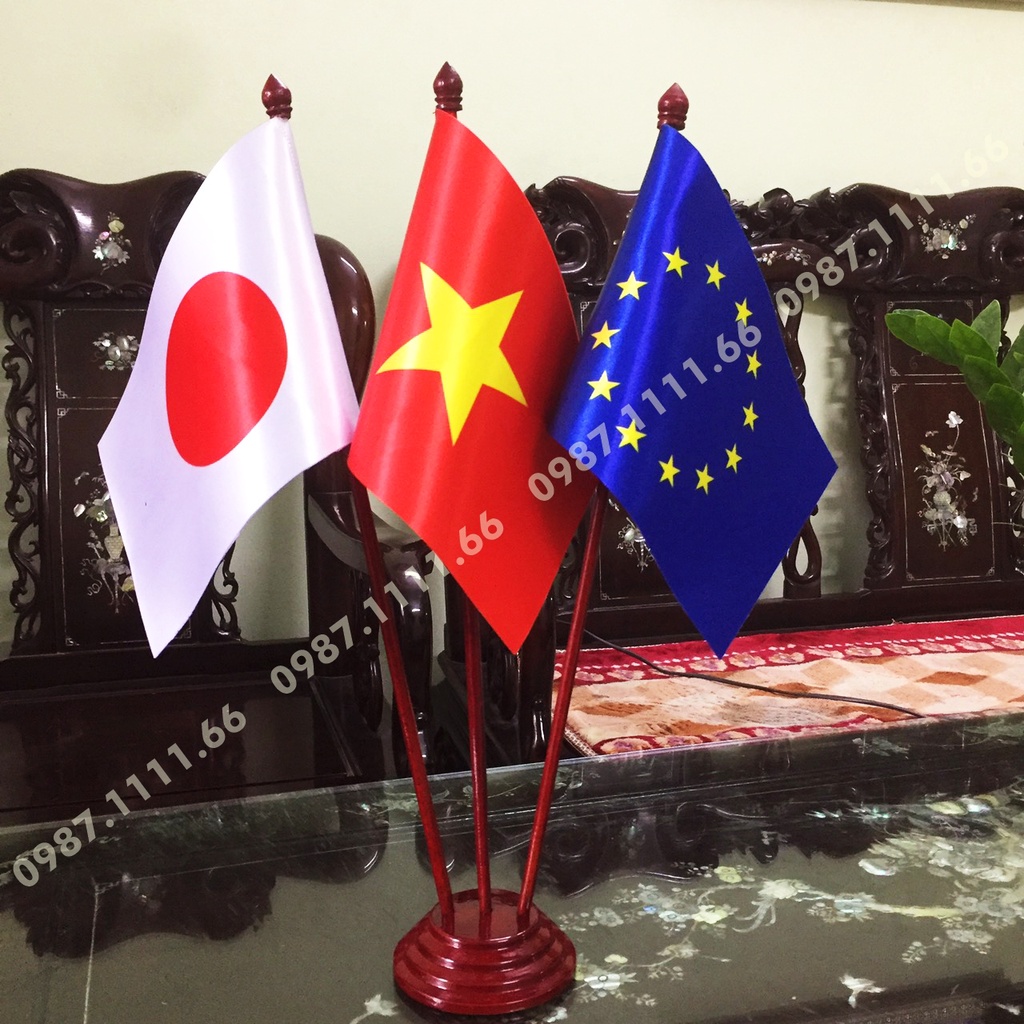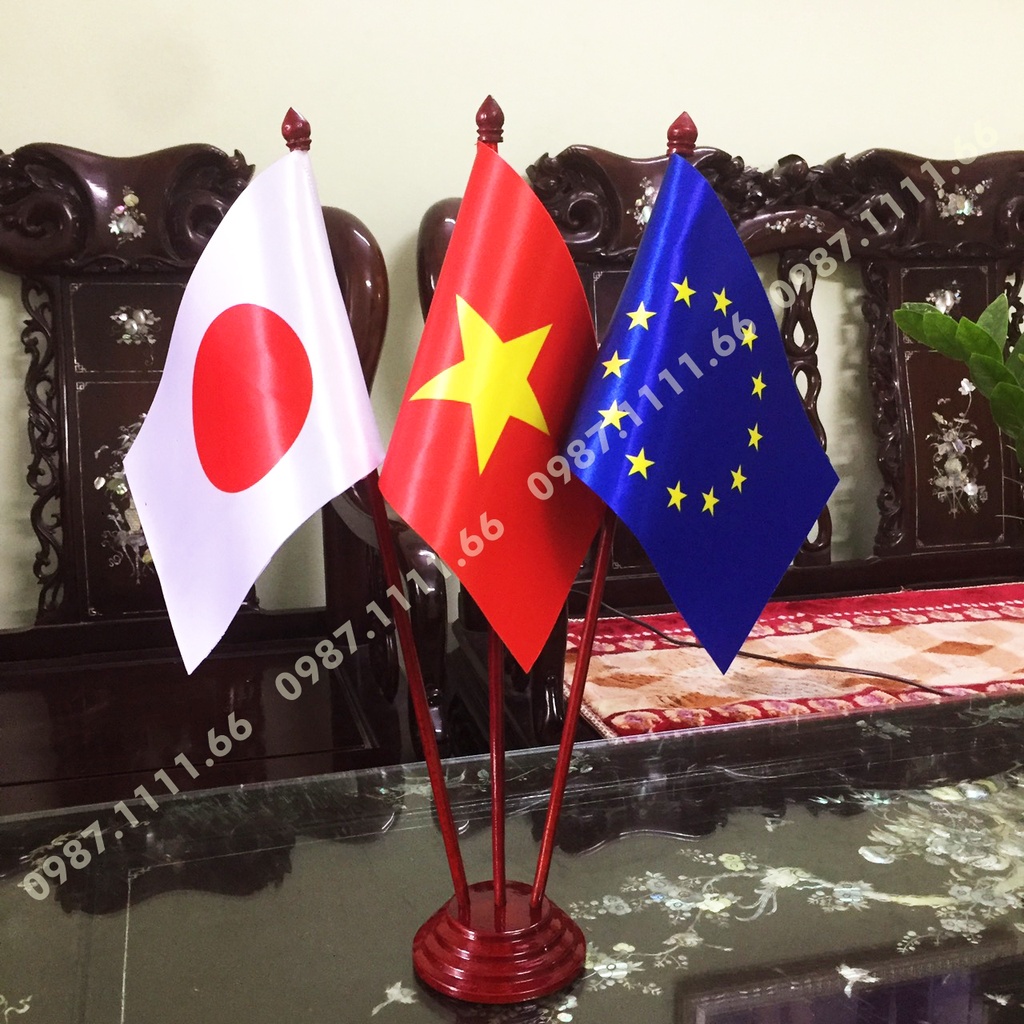 Cờ Để Bàn Gỗ 3 nước Việt Nam - Nhật Bản - EU