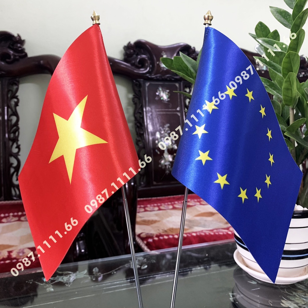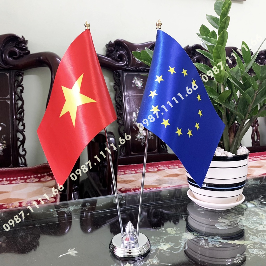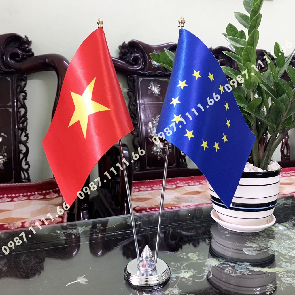 Giới thiệu Cờ Để Bàn Làm Việc Đế Inox Loại cắm 2 cờ Việt Nam - EU