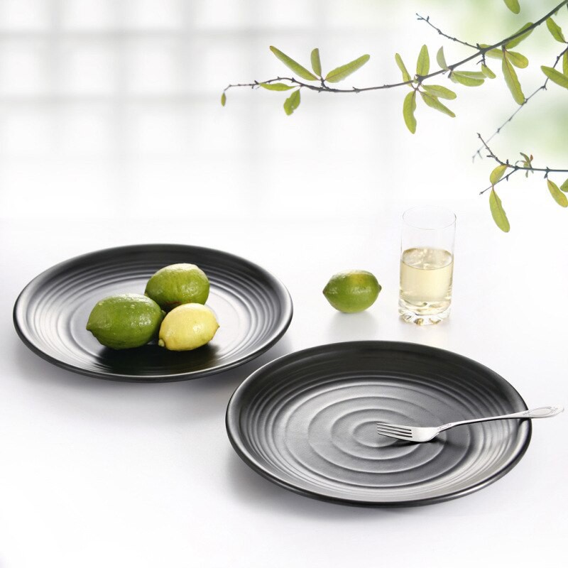 Nhà cửa & Đời sống > Bộ đồ bàn ăn > Dĩa || [Nhiều cỡ] Đĩa Nhựa Phíp Tròn, Dĩa Melamine Dáng Tròn LJP Màu Đen Sang Trọng - phong cách Hàn QuốcCòn hàng