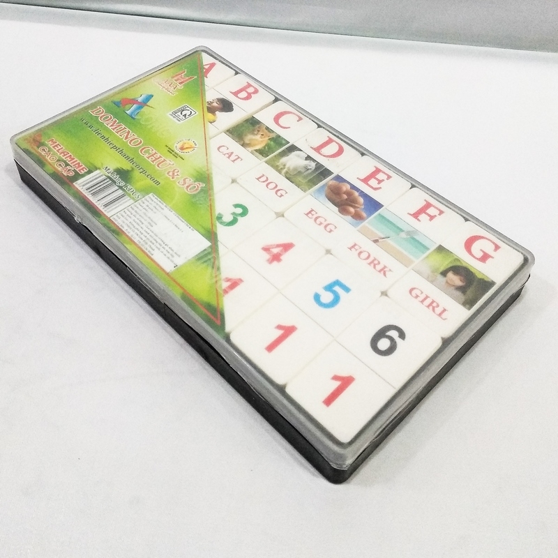 Cờ Domino Chữ Và Số - Quân cờ: 46 mm ± 1 x 24mm ± 1 x 8mm ± 1 - Hộp: 28 quân cờ - Quân cờ : Nhựa - Hộp đựng quân cờ: Nhựa