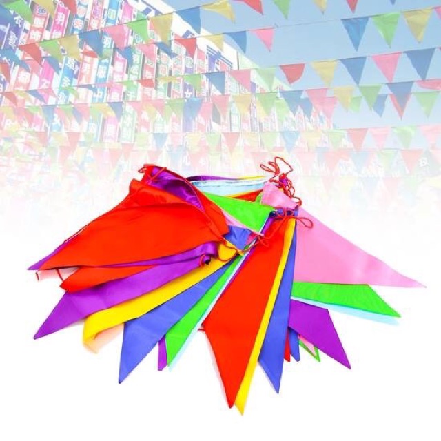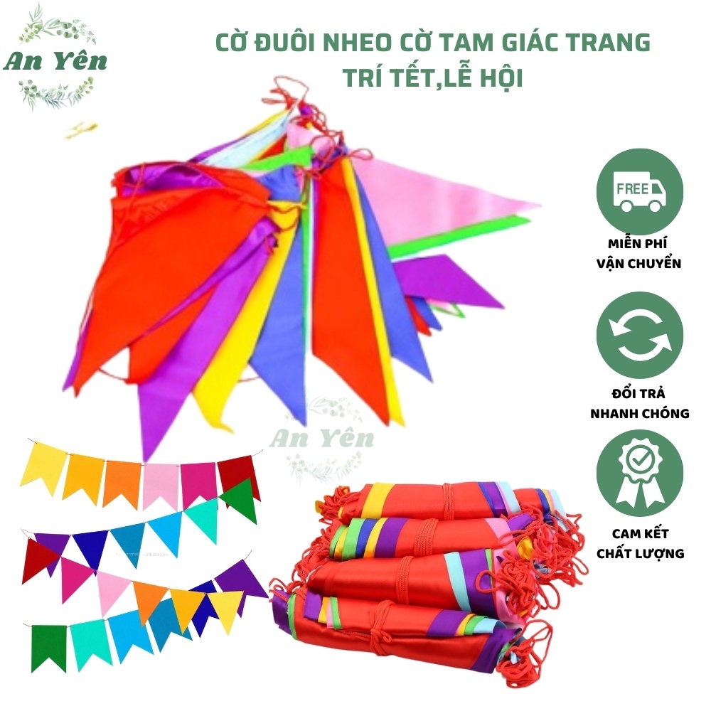 Giới thiệu CỜ ĐUÔI NHEO làm bằng vải , CỜ TAM GIÁC LOẠI ĐẸP cuộn 10m - dây trang trí các dịp lễ tết