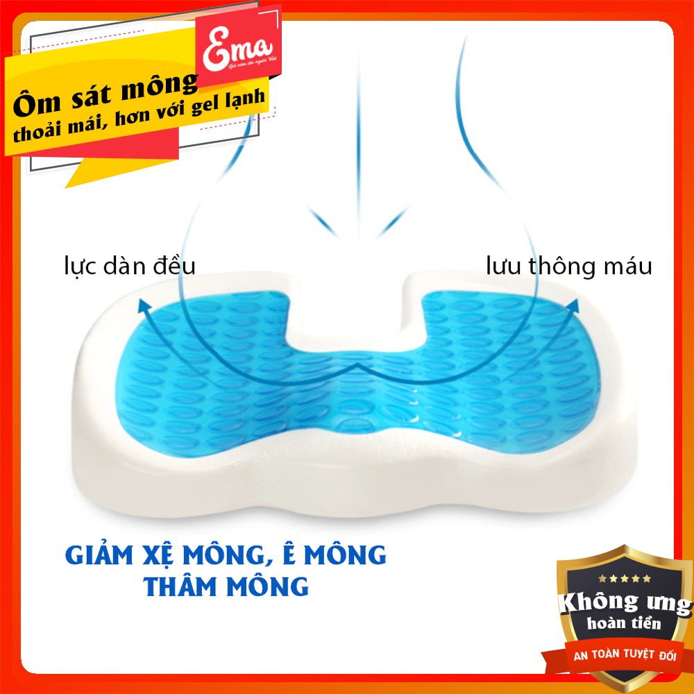 ⭐CÓ GEL LẠNH⭐Đệm lót ghế chống đau xương cụt, ê mông Ema cho dân văn phòng - Ruột cao su non kèm gel lạnh ôm sát mông