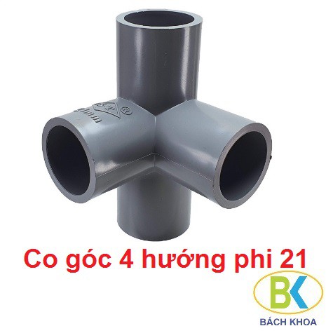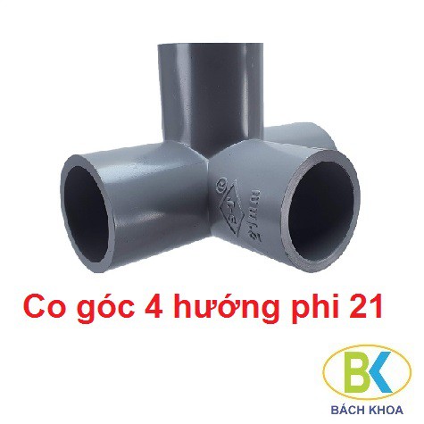 Co góc 4 hướng phi 21mmCo góc 4 hướng, T bốn hướng, T góc, co 4 nhánh, Tê 4 nhánh