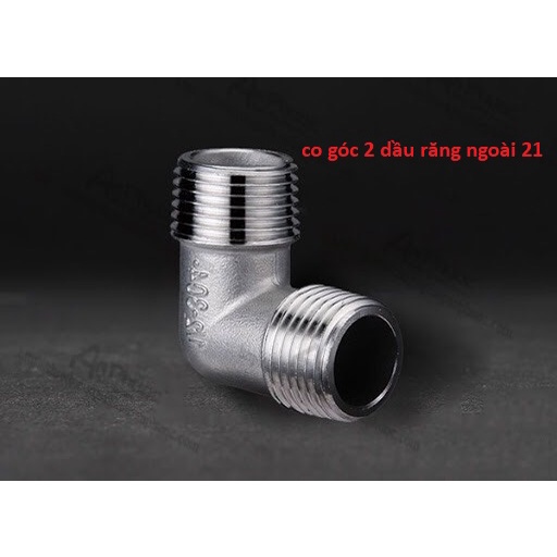 Giới thiệu Co góc inox304, nối 1 đầu ren trong,1 đầu ren ngoài 21, nối răng trong, nối hai đầu 21