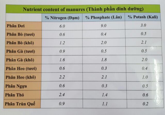 + Thành phần dinh dưỡng chính N-P-K (%): 6-9-3