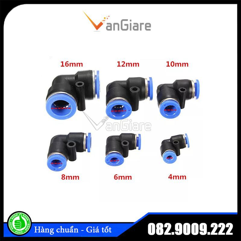 Giới thiệu Co khí nén PV, cút nối nhanh ống phun sương, ống hơi 4mm 6mm 8mm 10mm 12mm 14mm 16mm góc 90 L