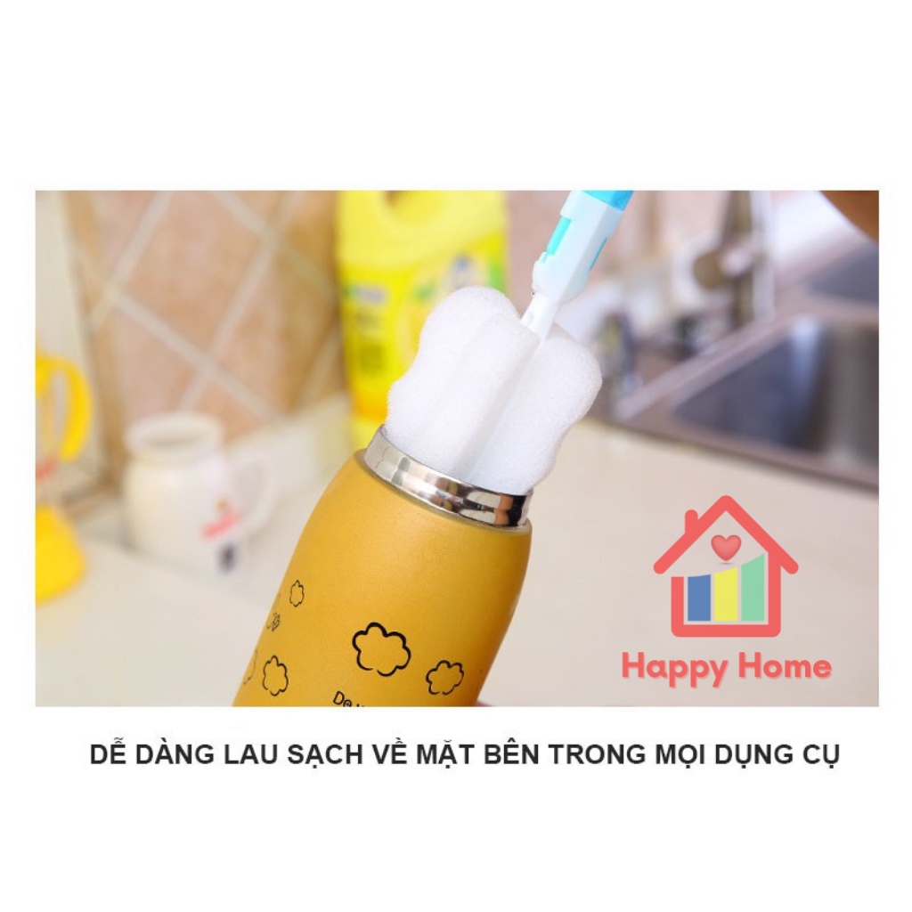 Cọ lau cốc bình sữa, mút có cán bọt biển rửa bình lau xe đa năng Happy Home