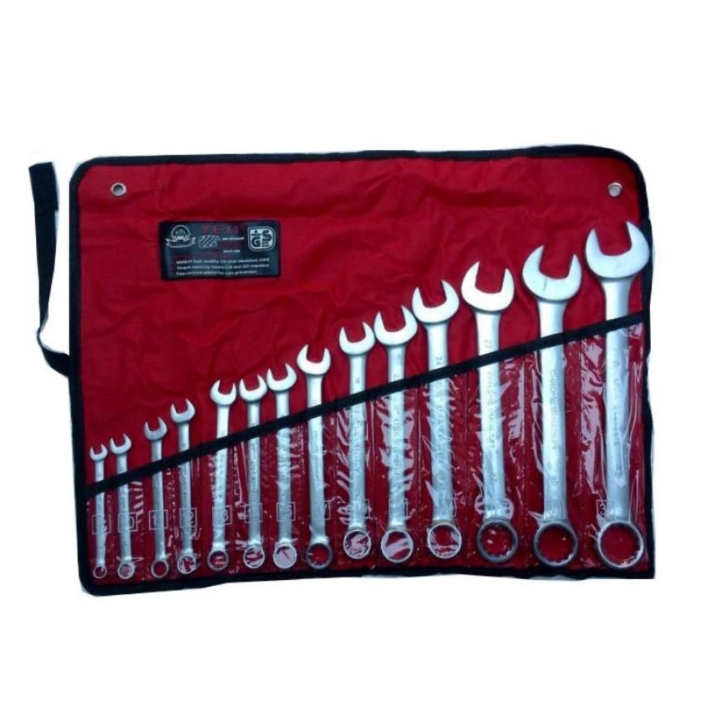 Bộ sản phẩm gồm 14 cờ lê 1 đầu hở và 1 đầu tròn: 8mm, 10mm, 11mm, 12mm, 13mm, 14mm, 15mm, 17mm, 19mm, 22mm, 24mm, 27mm, 30mm, 32mm.Kích thước: 380x110x70mm.