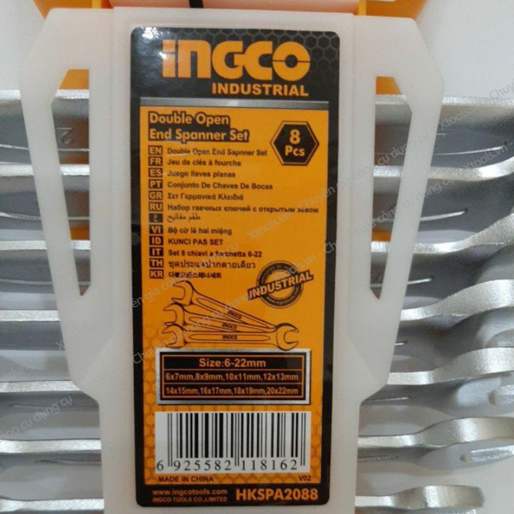 Bộ cờ lê 2 đầu miệng 8 chi tiết INGCO HKSPA2088 size 6-22mm dụng cụ cơ khí sửa chữa ô tô xe máy nhà cửa máy móc thiết bị