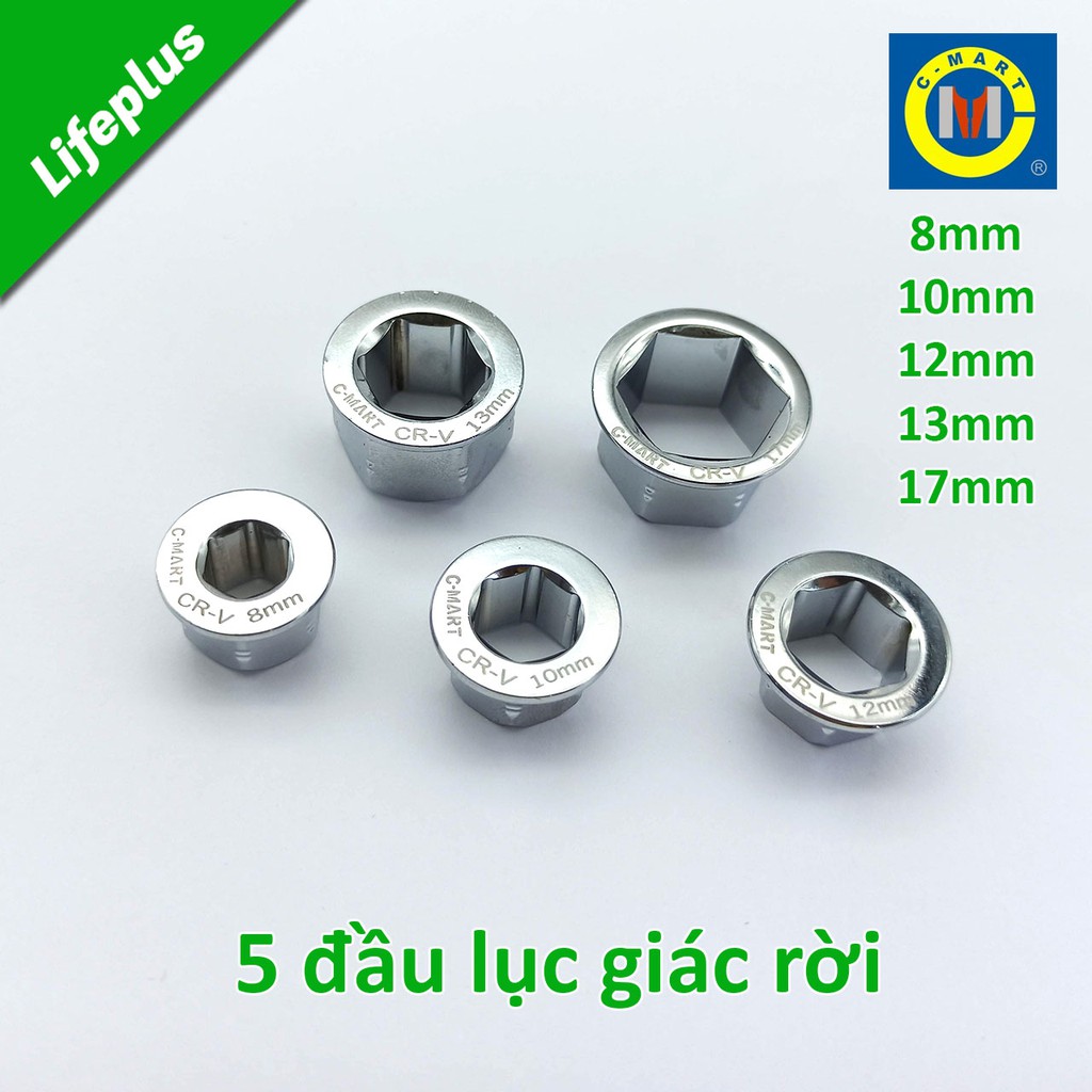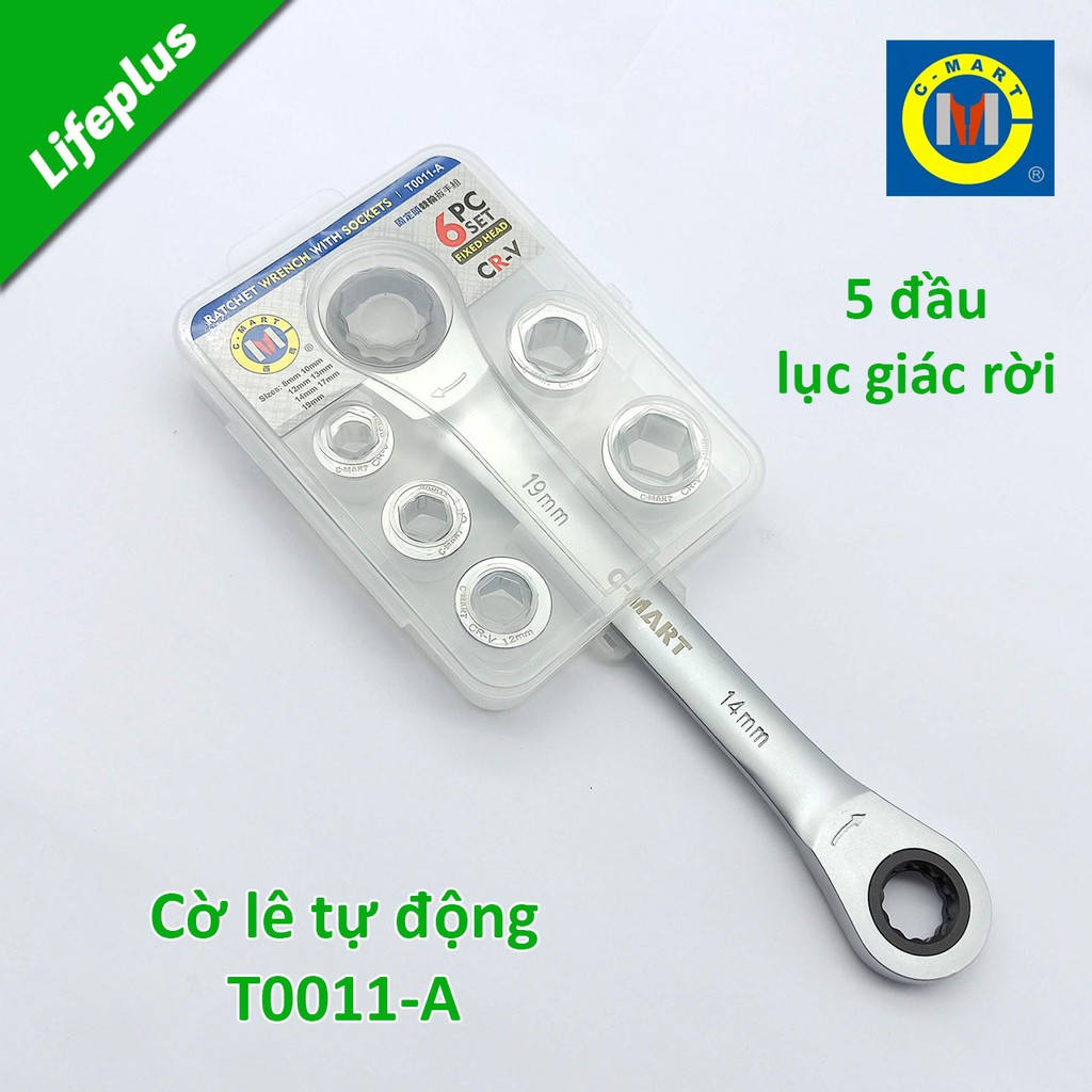 Bộ cờ lê 2 đầu vòng tự động kèm 5 đầu lục giác rời C-mart T0011-A 8-19mm