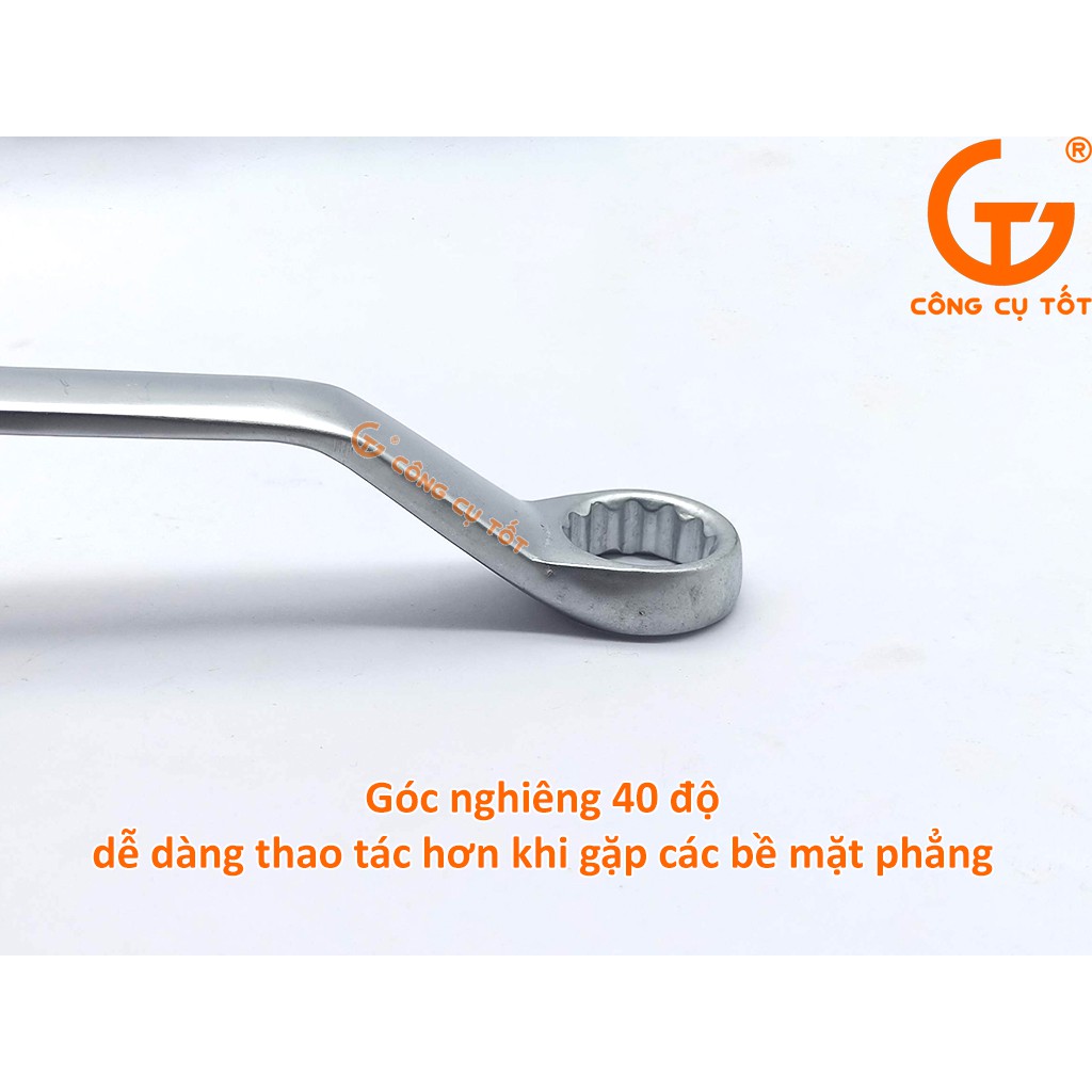 Cờ lê góc nghiêng 40 độ cho góc vặn thao tác dễ dàng hơn.