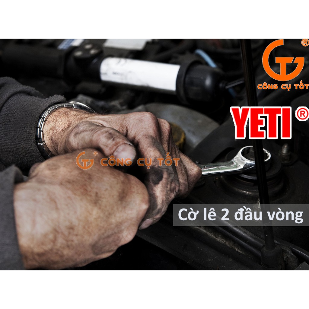 Cờ lê 2 đầu vòng YETI phù hợp với nhiều công việc sửa chữa, lắp ráp, bảo trì máy móc, thiết bị, xe cộ,...Sản phẩm là dụng cụ hữu ích nên sở hữu của mỗi người thợ.Làm từ hợp kim thép Chrome-Vanadium độ cứng cao, nhẹ, chịu lực, chịu nhiệt, chống ăn mòn.