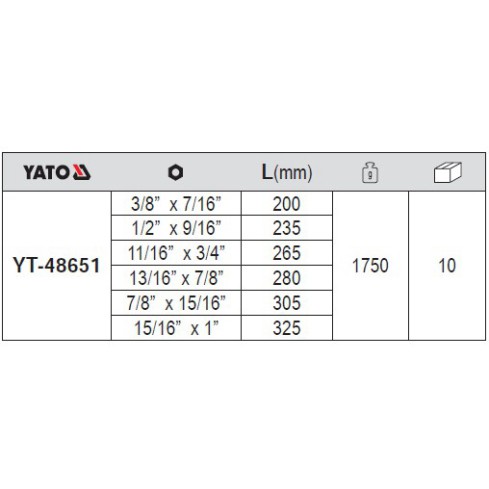 Bộ cờ lê 2 tròng (bóng mờ) hệ inch Yato YT-48651