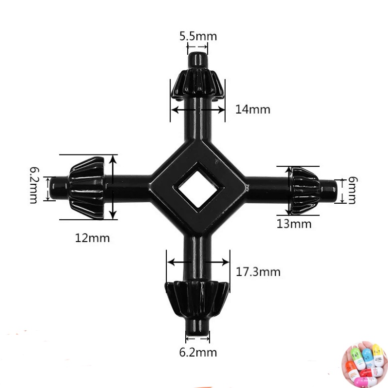 Chìa vặn 4 chiều với các kích thước khác nhau.