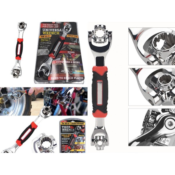 Cờ lê đầu xoay 48 trong 1 là một cờ lê có thiết kế thông minh, mỗi đầu cờ lê là 4 khẩu vặn ốc đa giác kết thành hình chữ thập, có thể xoay được 360 độ với kích thước khác nhau và vặn được 6 kiểu ốc khác nhau, tay cầm được nhựa chống trơn trượt.Chiếc cờ lê rất nhỏ gọn, đẹp mắt, dễ dàng mang theo, bạn không còn lo mang theo quá nhiều cờ lê trong túi đồ của mình nữa