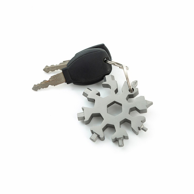 Cờ lê lục giác đa năng 18 in 1 hình bông tuyết tích hợp cờ lê 6mm, 7mm, 8mm , 9mm , 10mm , 11mm, 12mm, 14mm, đầu lục lăng 3mm, 4mm, 5mm ,6mm, 7mm , 8mm, tuốc nơ vít 2 cạnh, tuốc nơ vít 4 cạnh, dụng cụ mở nắp chai, dụng cụ mở hộp, móc chìa khóa làm quà tặng.