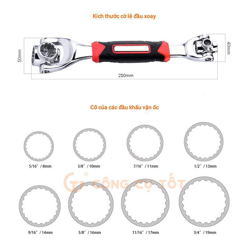 💔 Cờ lê đầu xoay 48 trong 1 là một cờ lê có thiết kế thông minh, mỗi đầu cờ lê là 4 khẩu vặn ốc đa giác kết thành hình chữ thập, có thể xoay được 360 độ với kích thước khác nhau và vặn được 6 kiểu ốc khác nhau, tay cầm được nhựa chống trơn trượt.