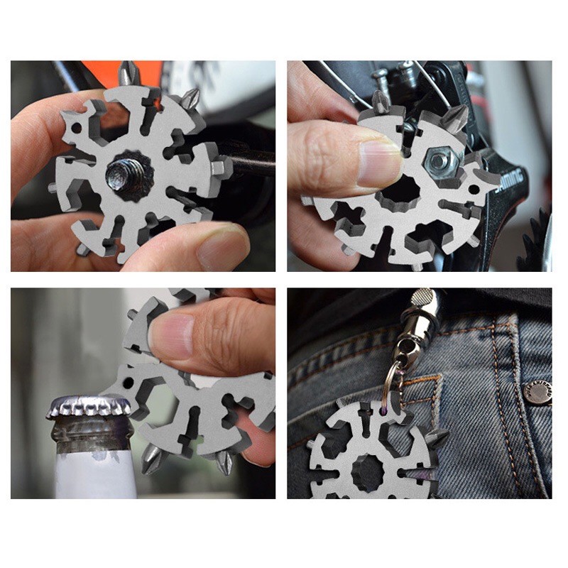 Cờ lê lục giác đa năng 19 in 1 hình bông tuyết tích hợp cờ lê 6mm, 7mm, 8mm , 9mm , 10mm , 11mm, 12mm, 14mm, đầu lục lăng 3mm, 4mm, 5mm ,6mm, 7mm , 8mm, tuốc nơ vít 2 cạnh, tuốc nơ vít 4 cạnh, dụng cụ mở nắp chai, dụng cụ mở hộp, móc chìa khóa làm quà tặng.