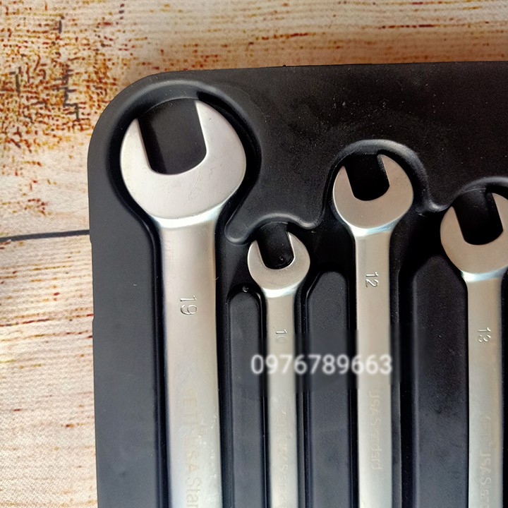 BỘ CỜ LÊ VÒNG MIỆNG TỰ ĐỘNGĐẦU GẬT GÙ Thép CRV cao cấp 8, 10, 12, 13, 14, 17, 19BỘ CỜ LÊ VÒNG MIỆNG TỰ ĐỘNG ĐẦU GẬT GÙ HỆ MÉT 7 CHI TIẾT chi tiết được sản xuất với chất liệu cao cấp Chrome vanadium steel, tạo độ rắn chắc tuyệt đối, chống biến dạng khi chịu lực cao cung cấp khả năng mở hay siết các chi tiết bu lông dễ dàng, thuận tiện hơn rất nhiều.