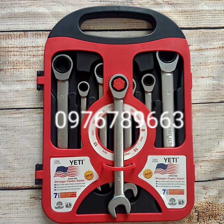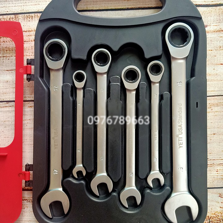 Bộ cờ lê đầu mở đầu tròng gật gù tự động Yeti 7 chi tiết thép CRV danh cho thợ sửa chữa