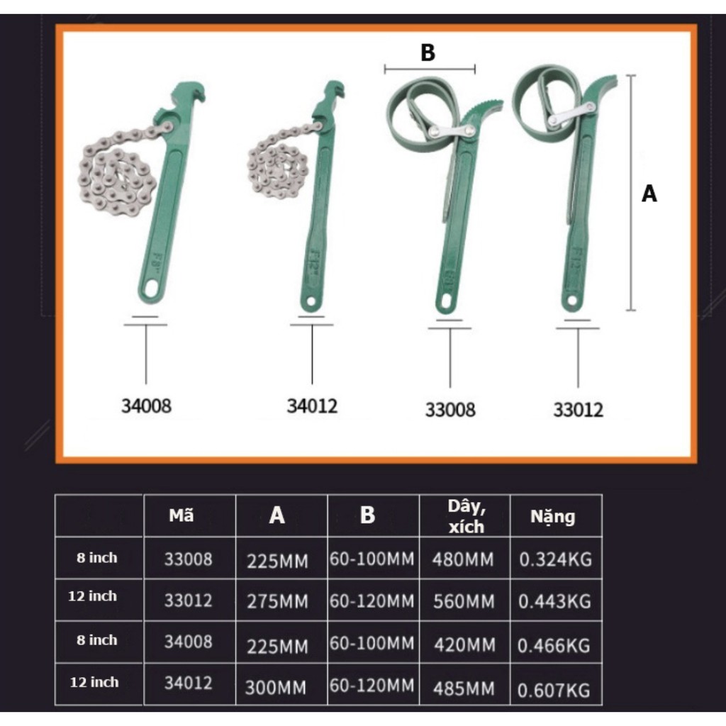 Nhà cửa & Đời sống > Dụng cụ & Thiết bị tiện ích > Dụng cụ > Bộ cờ lê || Cờ lê dây xích, cờ lê răng cưa đa năng 8inch, 12inch - Chính hãng TUOSEN / Tuo SenCòn hàng