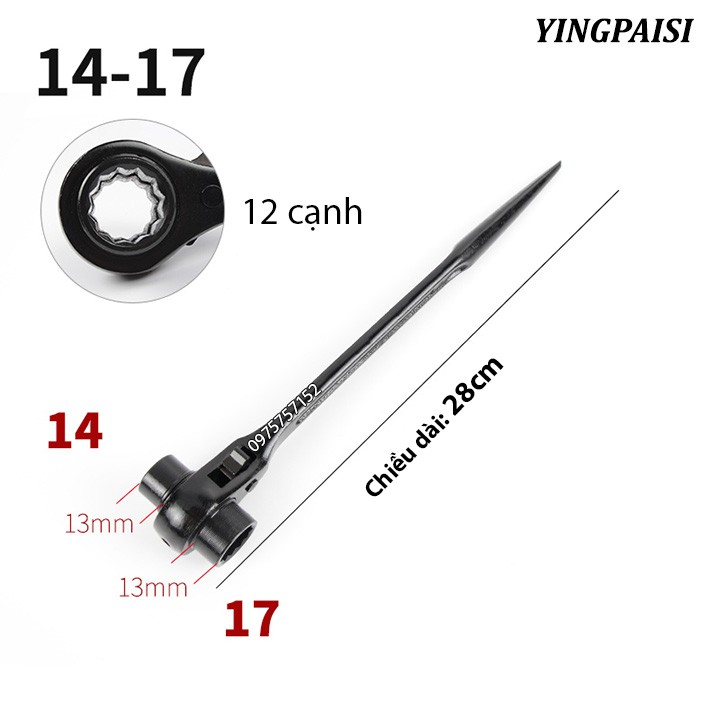 Cờ lê đuôi chuột 14-17mm, cờ lê giàn giáo tự động YINGPAISI thép cứng CR-V, tuýp giàn giáo đa năng 2 đầu