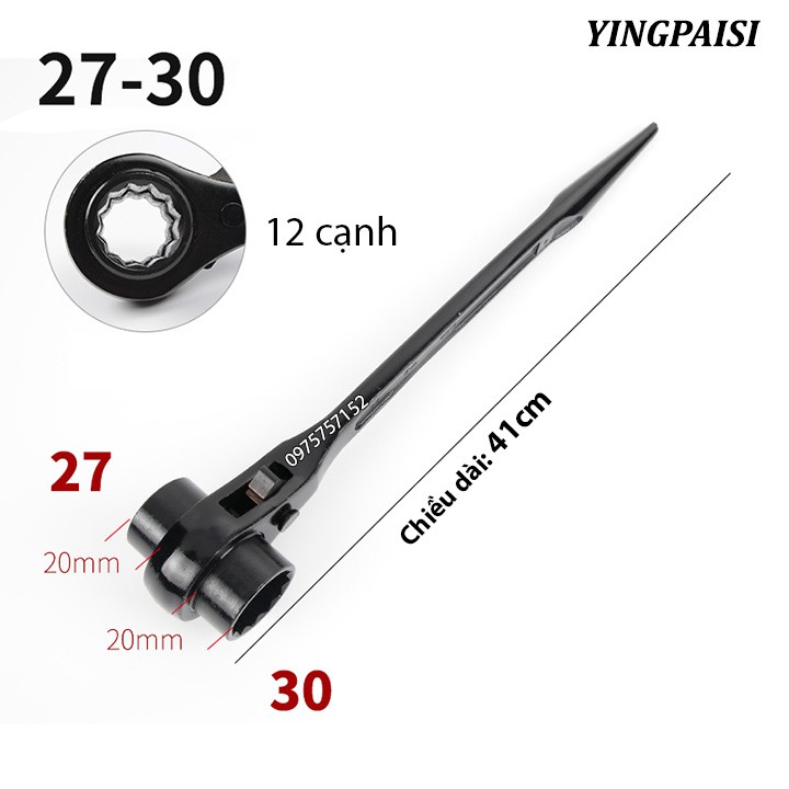 Cờ lê đuôi chuột 24-27mm, cờ lê giàn giáo tự động YINGPAISI thép cứng CR-V, tuýp giàn giáo đa năng 2 đầu