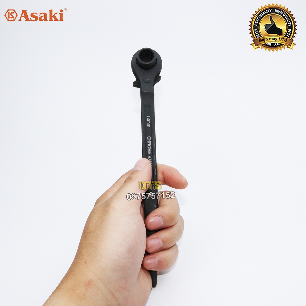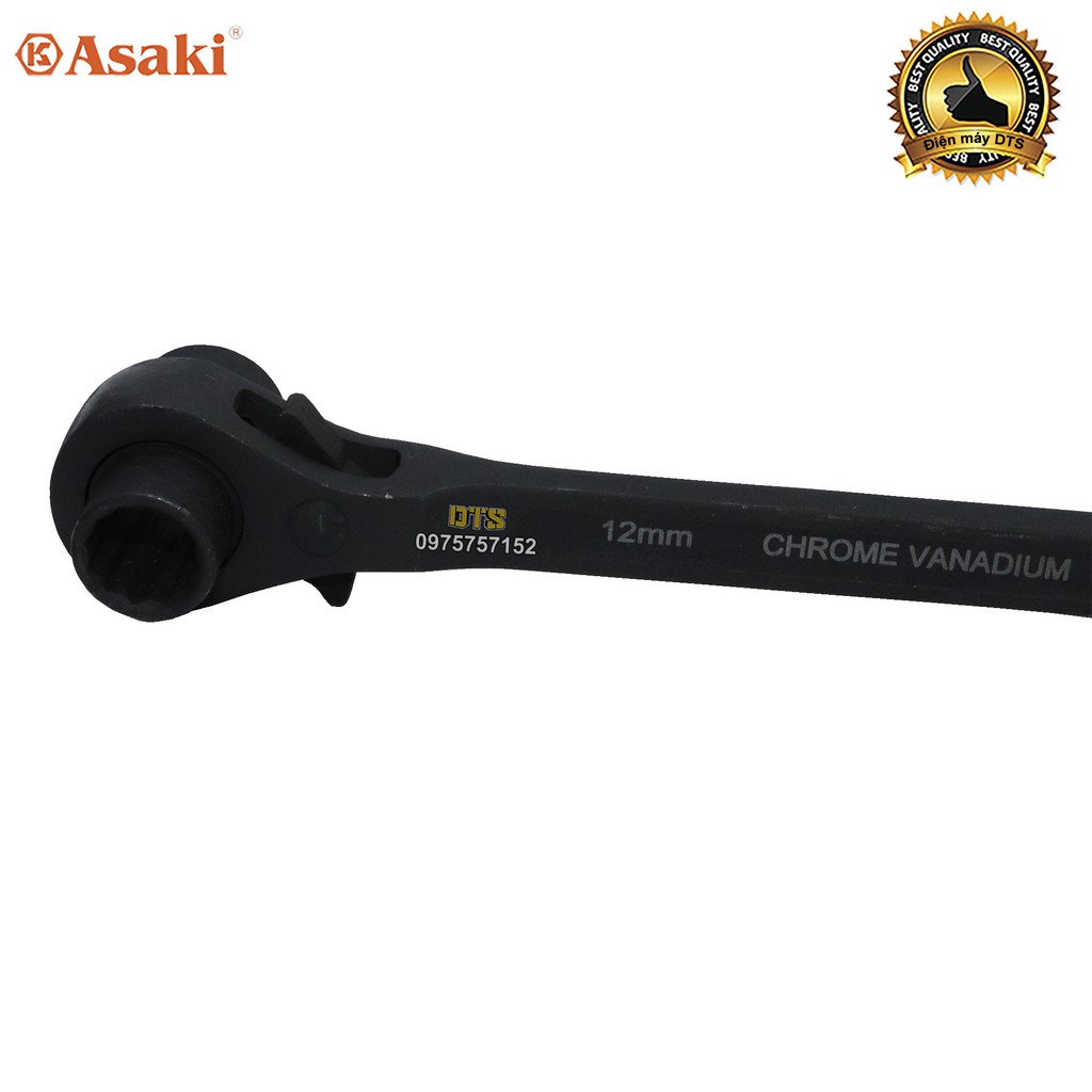 Cờ lê đuôi chuột cao cấp 12-14 mm Asaki AK-6451, cờ lê giàn giáo 2 đầu tự động thép Chrome Vanadium, công tắc đảo chiều