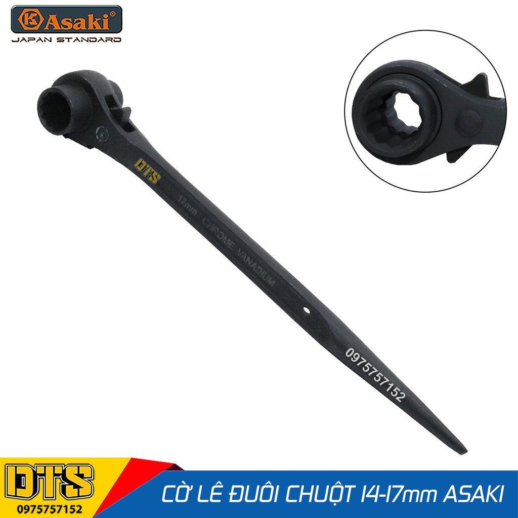 Cờ lê đuôi chuột cao cấp 14-17 mm Asaki AK-6452, cờ lê giàn giáo 2 đầu tự động thép Chrome Vanadium, công tắc đảo chiều