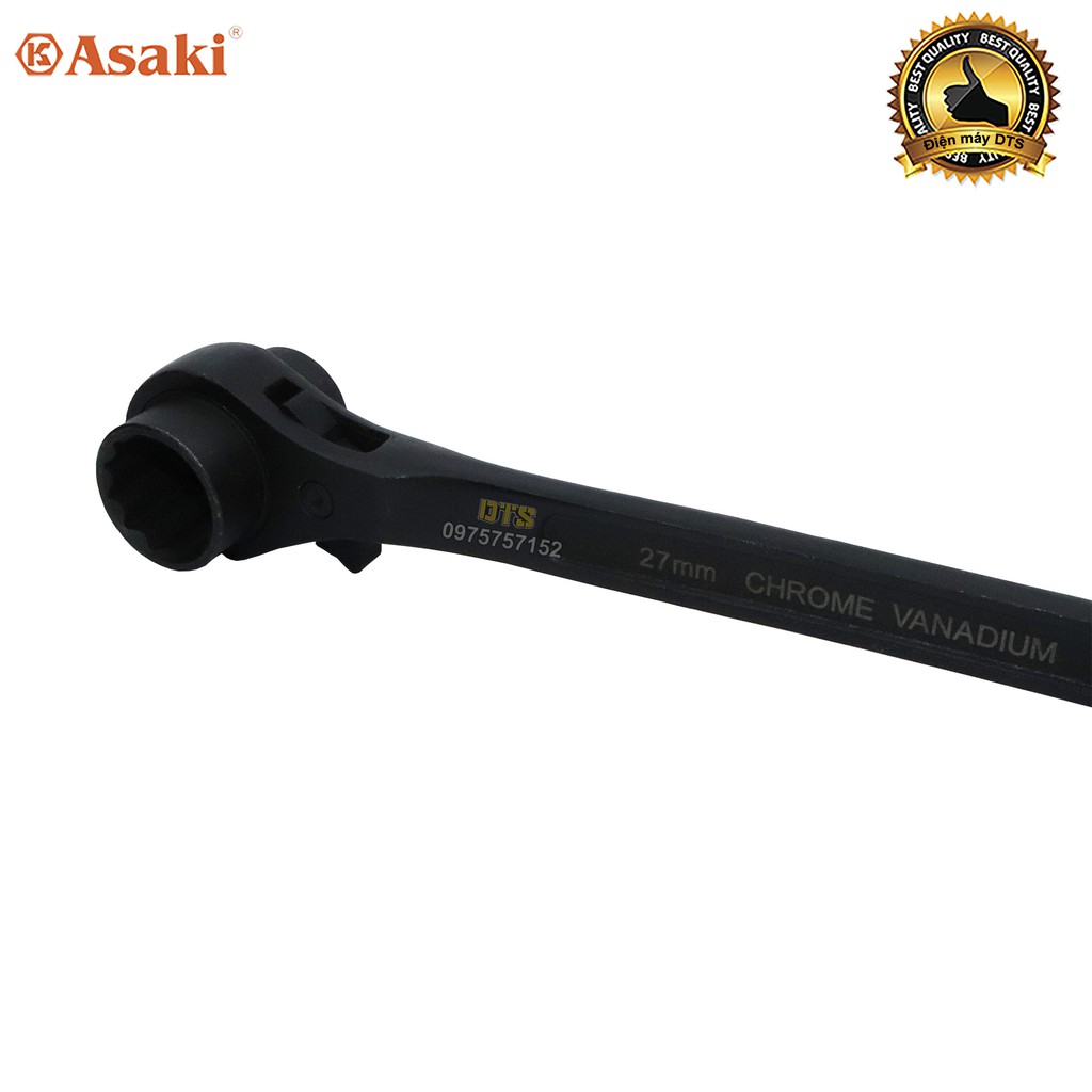 Cờ lê đuôi chuột cao cấp 24-27 mm Asaki AK-6458, cờ lê giàn giáo 2 đầu tự động thép Chrome Vanadium, công tắc đảo chiều