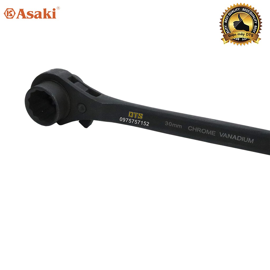 Cờ lê đuôi chuột cao cấp 27-30 mm Asaki AK-6459, cờ lê giàn giáo 2 đầu tự động thép Chrome Vanadium, công tắc đảo chiều