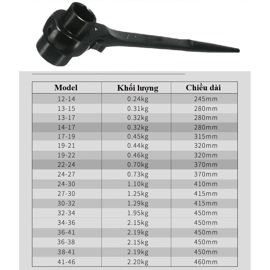 Giới thiệu Cờ lê đuôi chuột cle giàn giáo 12x14 (mm) đến 41x46 (mm)
