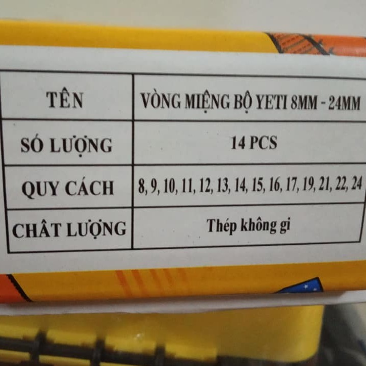 Bộ cờ lê Yeti 14 chi tiết gồm 14 chiếc cờ lê có một đầu hở và một đầu tròn với vòng miệng khác nhau như: 8, 9, 10, 11, 12, 13, 14, 15, 16, 17, 19, 21, 22, 24