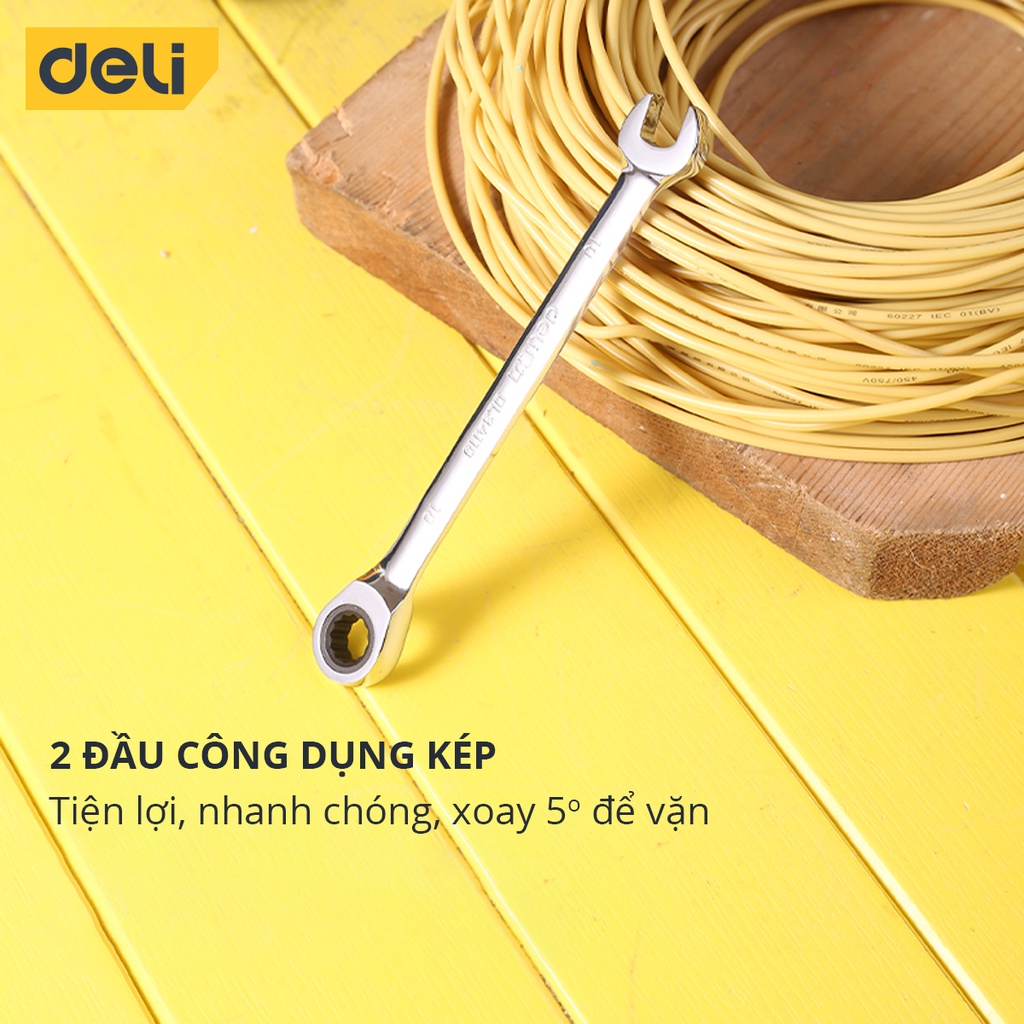 Cờ Lê Hai Đầu Đa Năng Deli Vòng Miệng Tự Động - Kích Cỡ 8mm Và 10mm - Tiện Dụng Trong Sửa Chữa Lắp Ráp DL34108 / DL34110