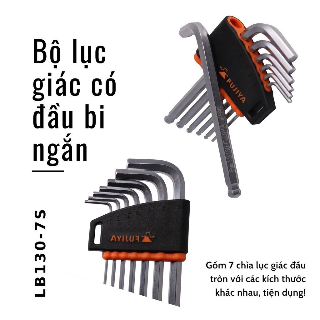 Nhà cửa & Đời sống > Dụng cụ & Thiết bị tiện ích > Dụng cụ > Bộ cờ lê || Bộ cờ lê lục giác có đầu bi (ngắn) FUJIYA LB130-7SCòn hàng