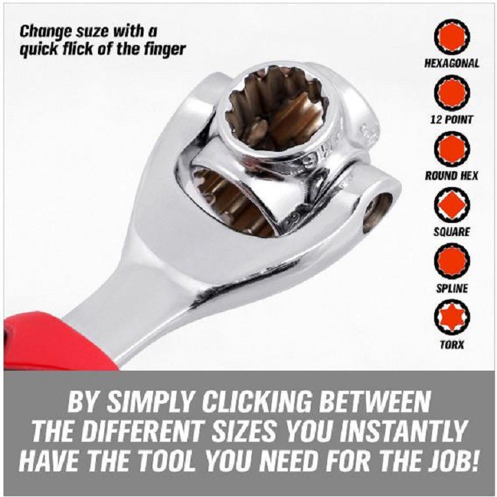 Có thể vặn được nhiều loại ốc khác nhau thay thế cho nhiều chiếc cờ lê bình thường khác.